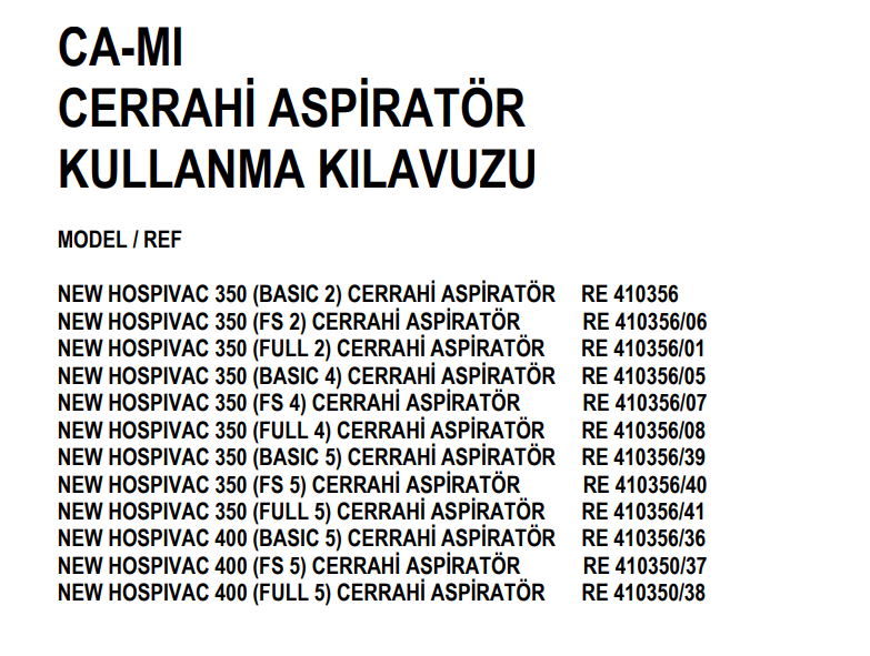 ST02831 Cerrahi Aspiratör CA-MI Hospivac 350 FS2 RE.410356/06